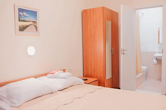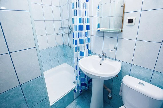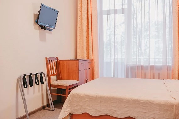 Площадь номера - 13 кв.м. 1 осн. место. 1 доп. место. Мебель: зеркало, кровать односпальная, прикроватная тумбочка, стул, шкаф. Оборудование: мини-холодильник (в номере или холодильник в прихожей на 2 номера), телевизор. Санузел: с душем, туалетные принадлежности, фен. Сервис: смена полотенец, смена постельного белья, уборка номера.
